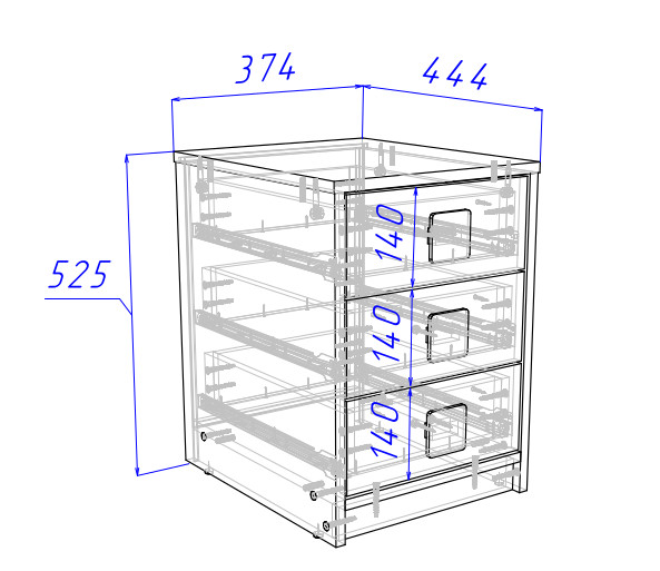 Длина/Ширина/Высота (мм) 374 × 444 × 525