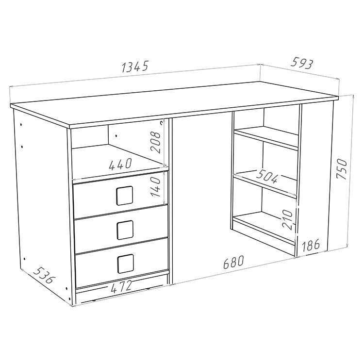 Длина/Ширина/Высота (мм) 1345 × 593 × 750