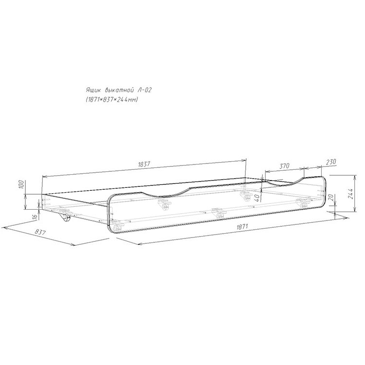 габариты (Д×Ш×В): 1688 × 784 × 184