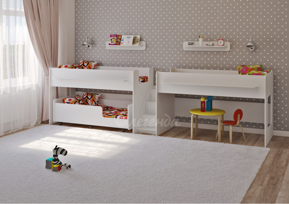 Выкатная кровать Легенда 23.5 белая - интересный и оригинальный комплект для троих детей.